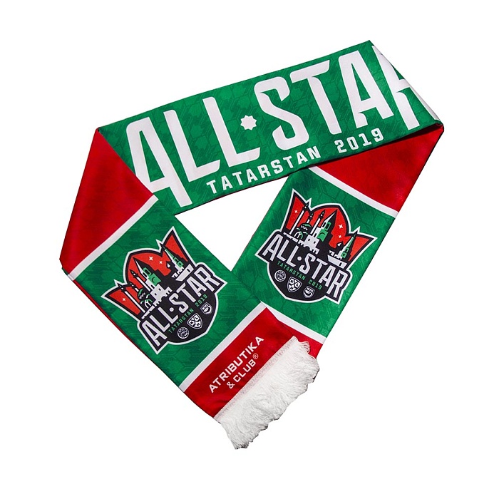 Двусторонний шарф из мягкого акрил и украшенный бахромой. Выполнен в фирменных цветах.