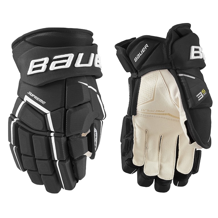 Перчатки хоккейные BAUER SUPREME 3S PRO SR модель профессионального уровня с контурной посадкой обеспечивает эффективную защиту.